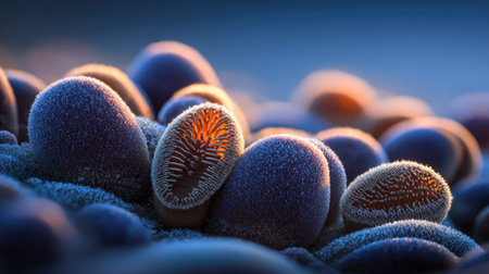 Parasite eggs, worm eggs, ai illustration in 3D style. Close-up view of worm eggs with highly detailed texture. Scientific background