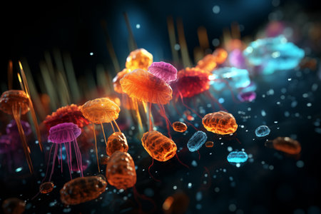 Colorful microorganism cells close up. illustration in high details for medical education and science. ai generative.