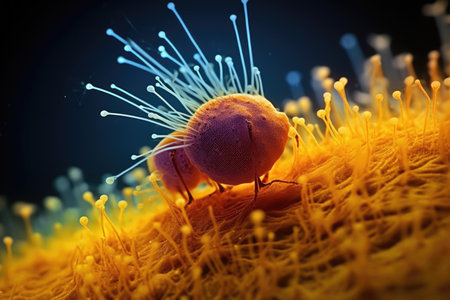 Macro shot of microbes cells and bacteria, 3d microscopic virus close up, abstract background or fantasy wallpaper, by ai generative