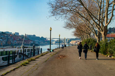 The river Douro and dock of La Ribeira district (Portuguese: Cais da Ribeira) in Porto, Portugal.