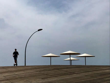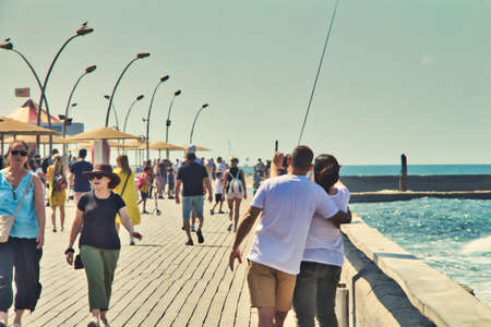 Tel Aviv Israel January 11, 2020 View of unidentified people walking on Herbert Samuel Promenade in Tel Aviv in the afternoon