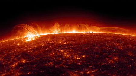 Dynamic solar flare with intense magnetic storms and plasma activity on the sun. Highlighting the sun's energetic outbursts.