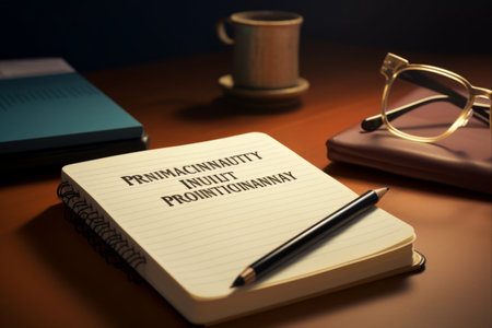 Priority write on a book. Supported by an additional services isolated wooden table.
