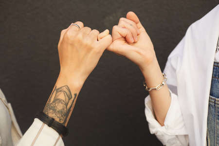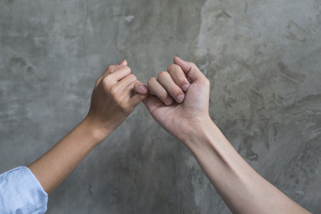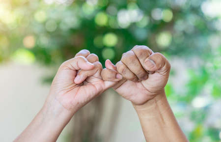 Concept of international friendship .Hand to pinky swear,Happy couple or friendship holding hands..