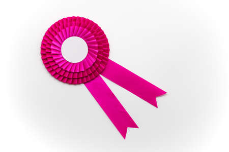 Blue award rosette with ribbons and copy space on black background