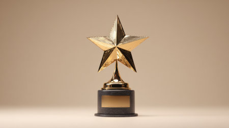 A gleaming golden star trophy stands proudly on a dark pedestal, symbolizing achievement and recognition.
