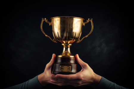 Hands offering a shiny silver trophy, symbolizing achievement, recognition, and success. Generative AI