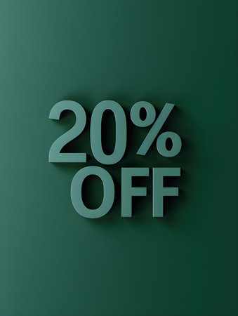 Dark Green '20% OFF' Promotional Sign on a Dark Green Background