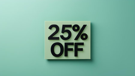 Black '25% OFF' Promotional Sign on a Light Green Background with Copy Space