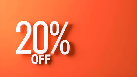 White '20% OFF' Promotional Sign on an Orange Background with Copy Space
