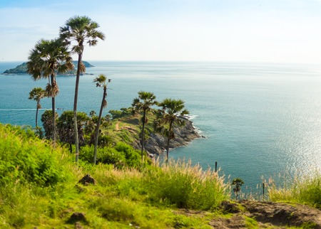 The beautiful view of the green trees and sea. Promthep Cape, Thailand.