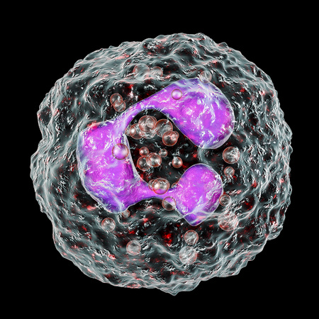 Neutrophil, a white blood cell, 3D illustration. The most abundant type of granulocytes, has phagocyting activity, takes part in inflammation