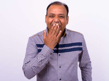 Portrait of happy mature overweight Indian businessman