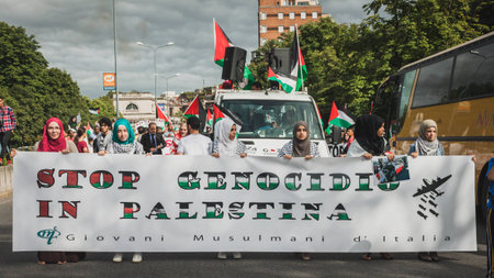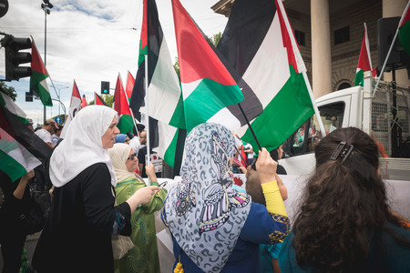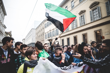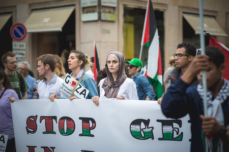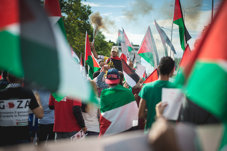 MILAN, ITALY - JULY 26: Pro Palestine manifestation held in Milan on July, 26 2014. People took to the streets to claim Gaza and Palestine freedom against israel war and bombing