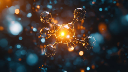 Abstract representation of molecular structures with luminous connections highlighting the intricate beauty of chemical composition and bonds in a dark atmosphere