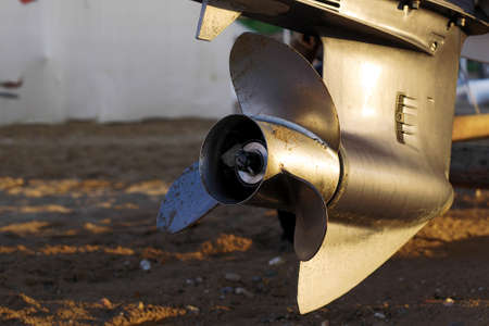closeup of outboard motor's steel propeller
