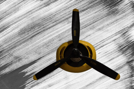 Aircraft propeller on the background of a painted wall. Selective focus.