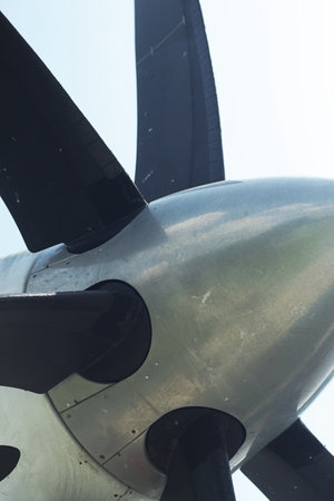 Close-up of propeller of an old airplane with propeller