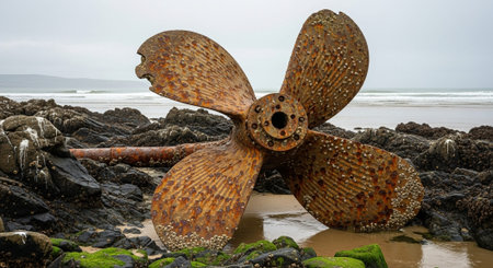 closeup of a propeller on a wind-powered boat, created with generative ai