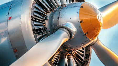 This stunning close-up image showcases the intricate details of an airplane propeller and engine components, highlighting the power and engineering behind aviation technology.