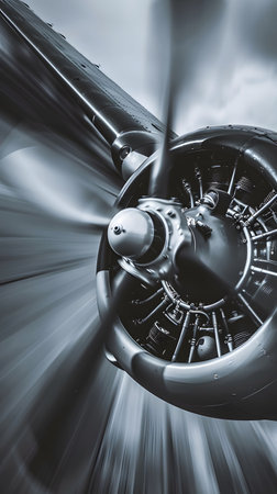 Propeller in motion, blur of speed, vintage and modern aircraft blend