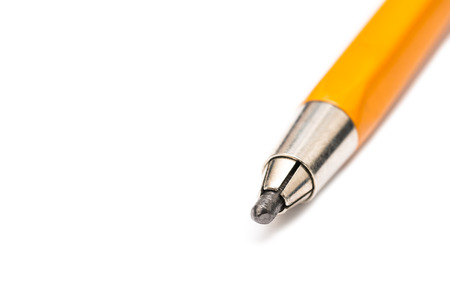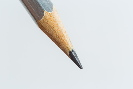 Closeup pencil with a broken tip on white background