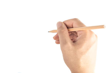 Right hand holding a pencil isolated on white background