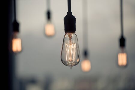 Vintage incandescent light bulb decorate in coffee shop - Vintage Filter