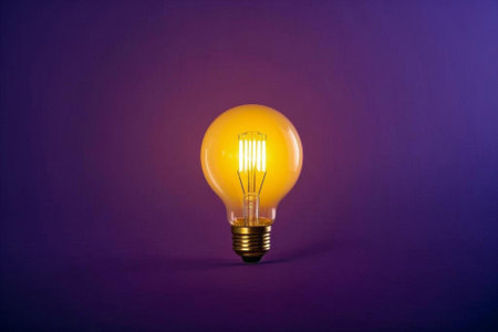 A single incandescent lightbulb glows brightly against a twilight sky, symbolizing the spark of innovation and creativity, perfect for presentations on new concepts and forward-thinking.