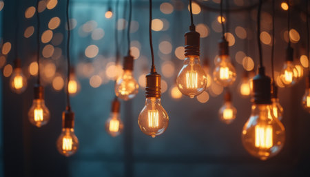 A captivating image of hanging lightbulbs creating a warm, inviting ambiance. Perfect for event decor, cozy gatherings, or creative design inspiration.