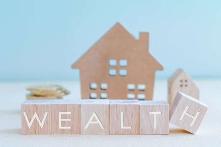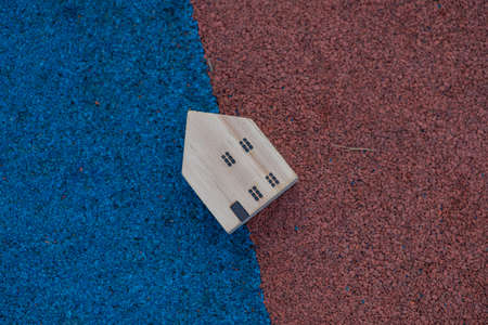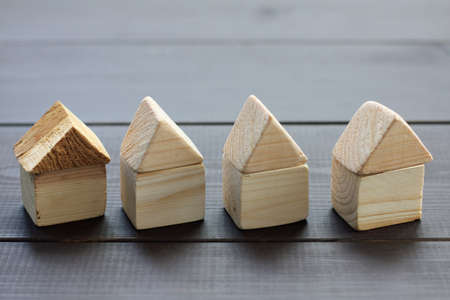 Wooden house toy object on floor background business concept
