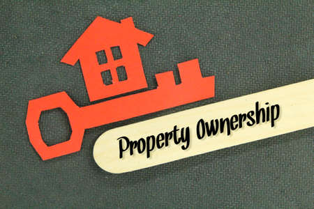 paper houses, paper keys and ice cream sticks with the word property ownership