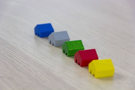 Home wooden white blocks arranged in row. Demand for housing. Rising and falling home prices. The growth of the city and its population