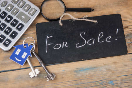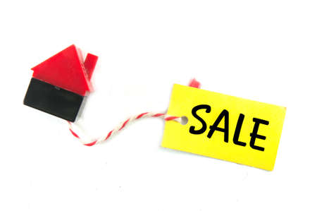 House for sale - sale tag with wooden house figure