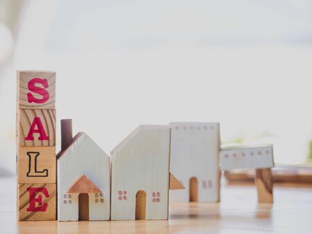 Real Estate Sale Small Toy Wooden Houses and Sale Lettering.