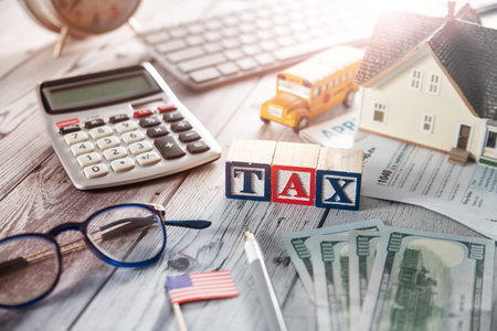 TAX wordings on woodens blocks with US Dollar bills