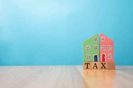 Wooden house on tax. The concept of finance and investment in property residential and tax payment.