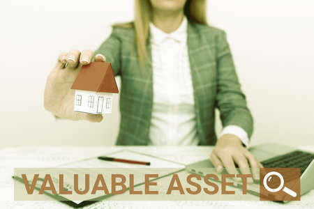 Conceptual caption Valuable Asset. Business showcase Your most valuable asset is your ability or capacity A Young Lady Orbusiness-Woman Calculating Orsigning Loans Ormortagages Orexpences