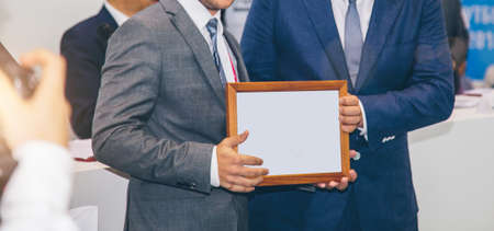 Employee receiving a medal for outstanding contribution recognition of hard work and skill a moment of pride