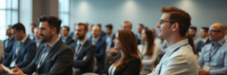 Business professionals engage in insightful discussions during a corporate conference in a modern conference room