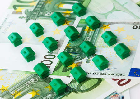 Small toy houses and euro banknotes