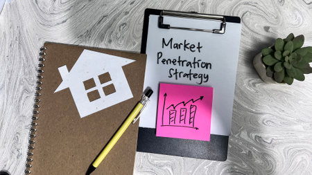 Concept of Market Penetration Strategy write on paperwork isolated on Wooden Table.