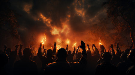 Capturing divine moments: church worship concept Christians, raised hands, earnestly pray and worship to cross in the sacred ambiance of a church building, expressing faith and spiritual connection