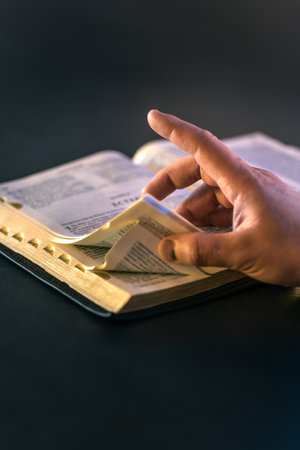 Open Bible close-up. Christianity concept. Reading Gods Holy Bible.