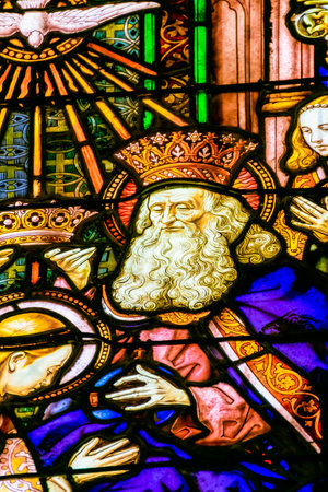 God the Father, stained glass window by Alesso Baldovinetti (1425–1499) in the Basilica di Santa Croce (Basilica of the Holy Cross) - famous Franciscan church in Florence, Italy