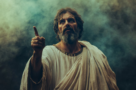 Intense Portrait of a Biblical Figure with Fiery Element Art Concept of Spirituality History and Mysticism.
