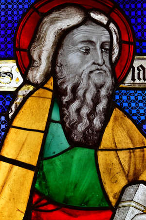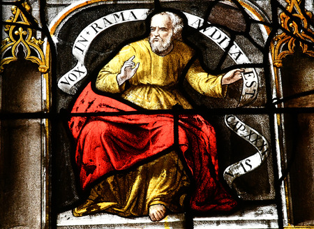 The prophet Isaiah, detail of stained glass window by Sieger Koder in St. James church in Hohenberg, Germany