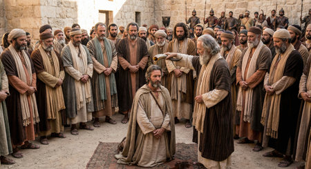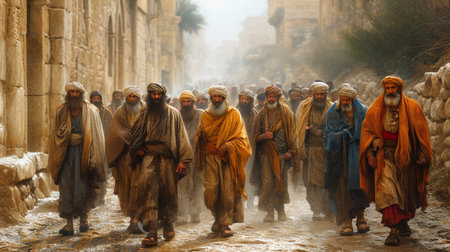 Pharisees on street jerusalem. cross religion. Generate AI