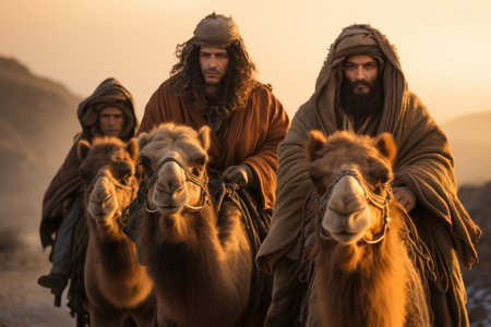 Led by faith and divine calling, Moses guides Israelite Jews through impenetrable wilderness, lighting way for them reach promised land and providing them with divine protection. desert