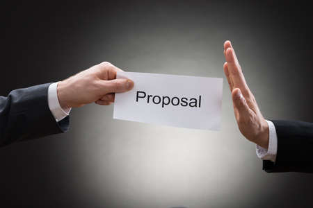 Gesture of a hand rejecting a wedding proposal isolated on a white background.